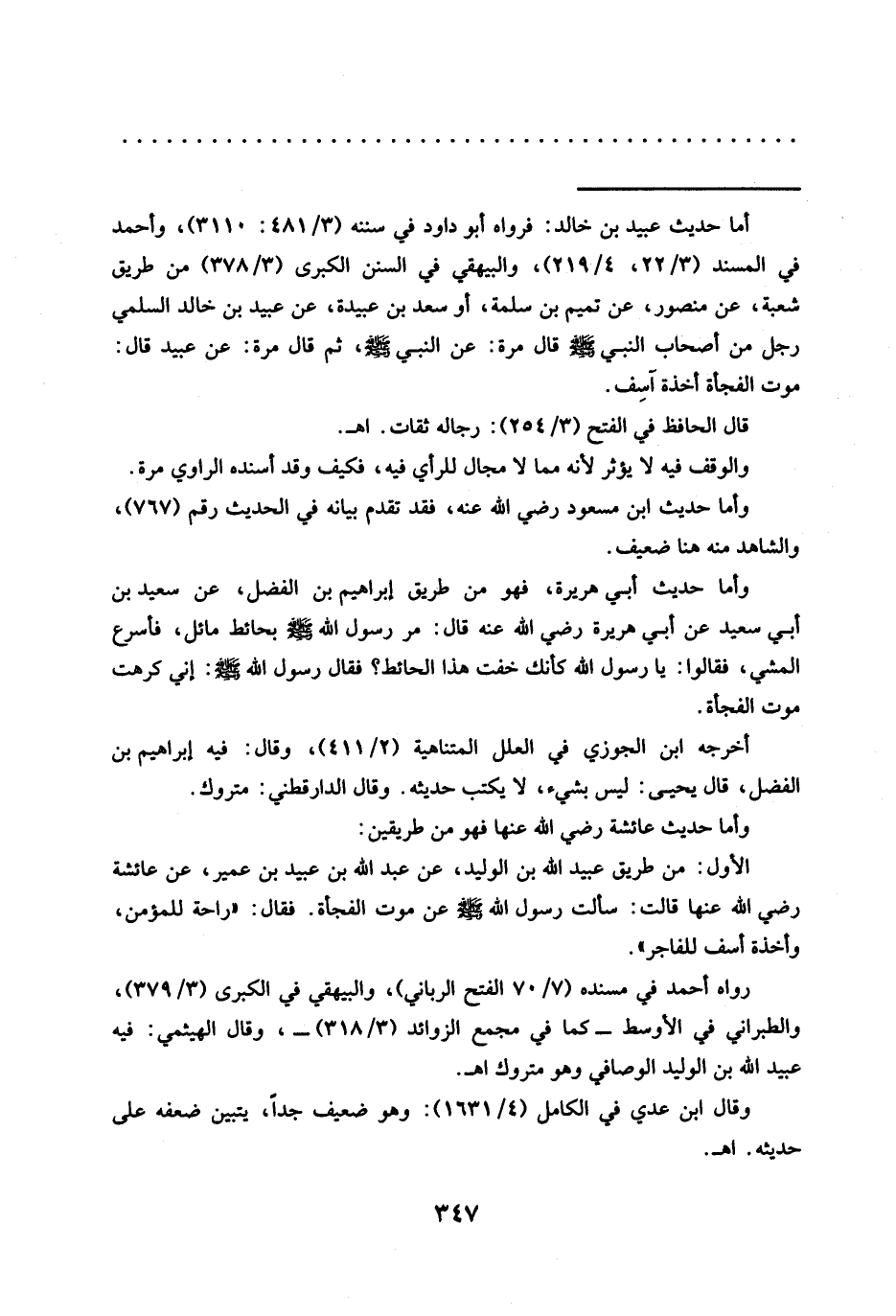 = أما حديث عبيد بن خالد: فرواه أبو داود في سننه (3/ 481: 3110)، وأحمد في المسند (3/ 22، 4/ 219)، والبيهقي في السنن الكبرى (3/ 378) من طريق شعبة، عن منصور، عن تميم بن سلمة، أو سعد بن عبيدة، عن عبيد بن خالد السلمي رجل من أصحاب النبي -صلى الله عليه وسلم- قال مرة: عن النَّبِيِّ -صَلَّى اللَّهُ عَلَيْهِ وَسَلَّمَ-، ثُمَّ قَالَ مرة: عن عبيد قال: موت الفجاة أخذة آسِف.