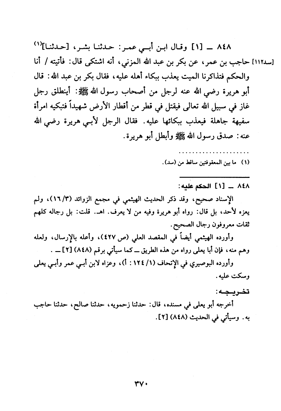 848 - وَقَالَ ابْنُ أَبِي عُمَرَ