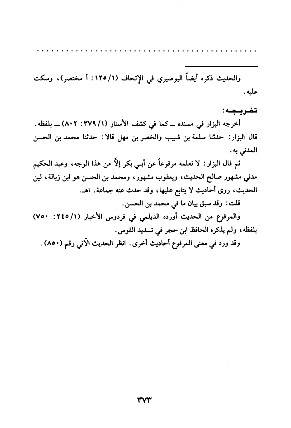 قال البزار: حدثنا سلمة بن شبيب والخصر بن مهل قالا: حدثنا محمد بن الحسن المدني به.