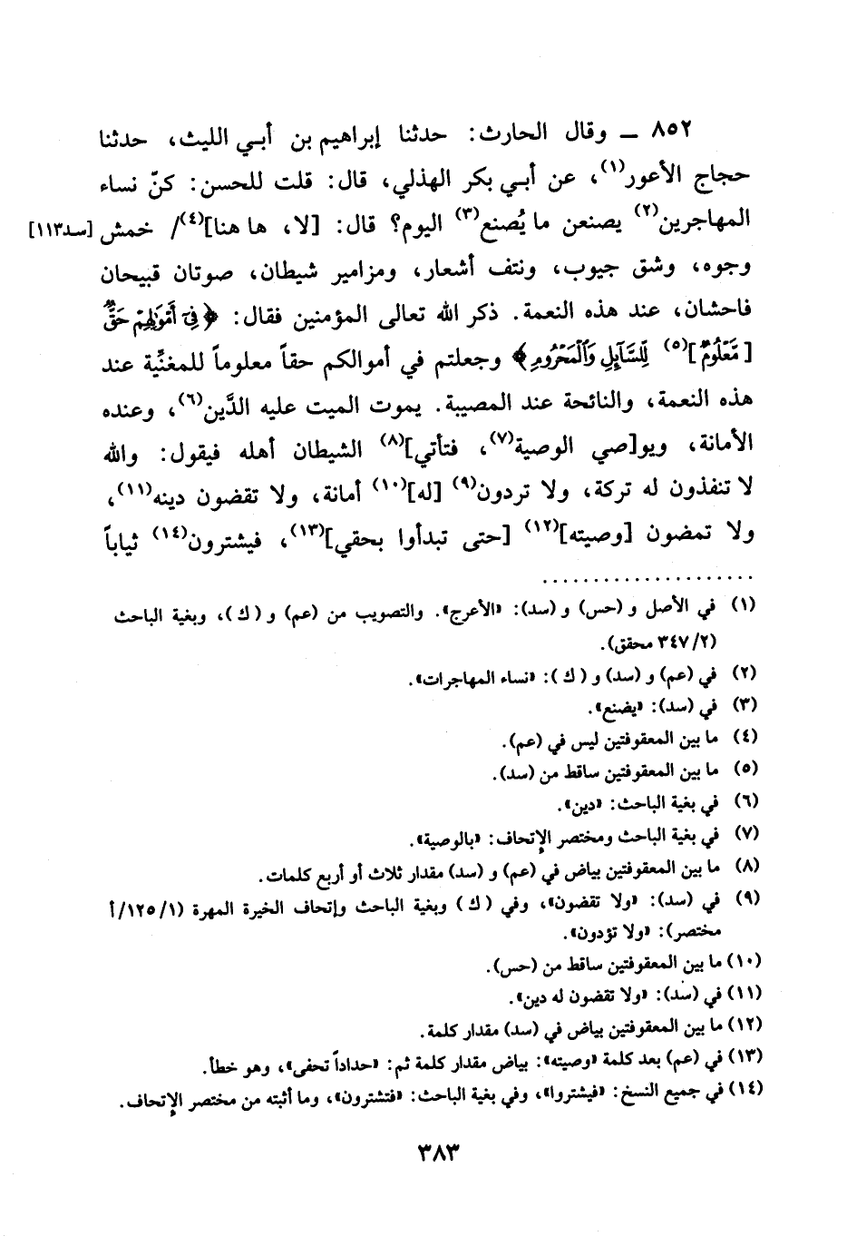 852 - وَقَالَ الْحَارِثُ