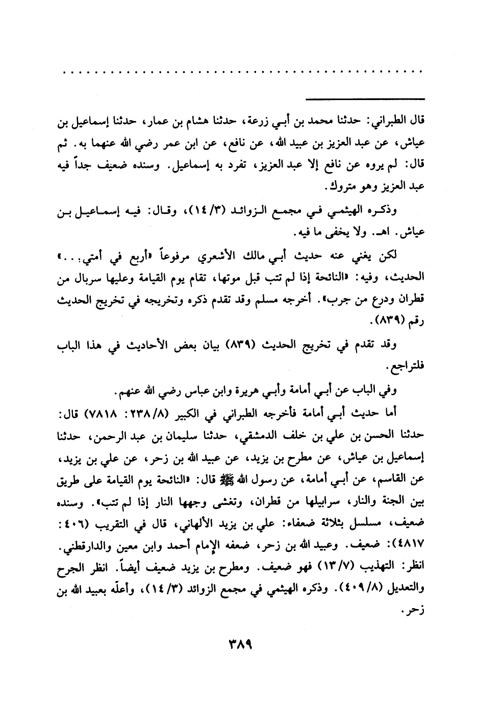 = قال الطبراني: حدثنا محمد بن أبي زرعة، حدثنا هشام بن عمار، حَدَّثَنَا إِسْمَاعِيلُ بْنُ عَيَّاشٍ، عَنْ عَبْدِ الْعَزِيزِ بْنِ عُبَيْدِ اللَّهِ، عَنْ نَافِعٍ، عَنِ ابْنِ عمر رضي الله عنهما به. ثم قال: لم يروه عن نافع إلا عبد العزيز، تفرد به إسماعيل. وسنده ضعيف جداً فيه عبد العزيز وهو متروك.