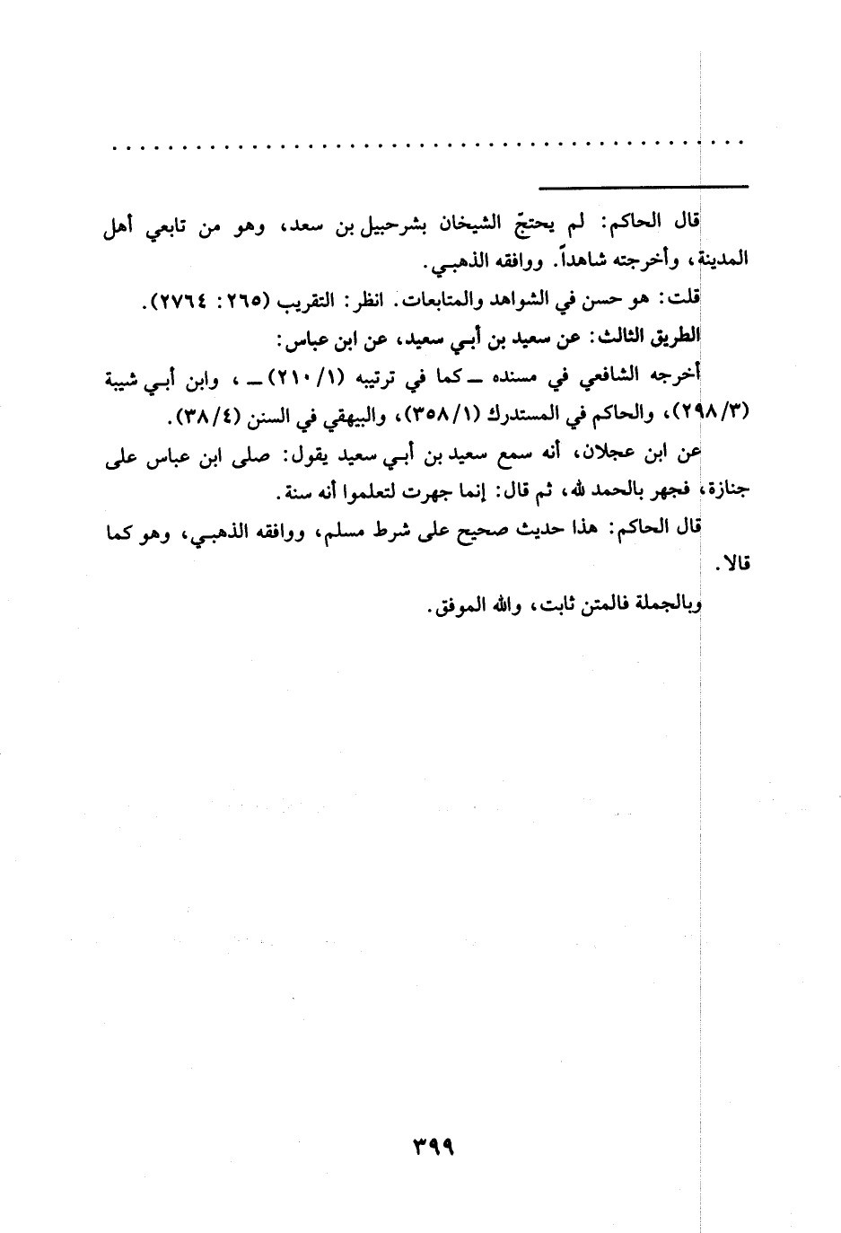 = قال الحاكم: لم يحتج الشيخان بشرحبيل بن سعد، وهو من تابعي أهل المدينة، وأخرجته شاهدًا. ووافقه الذهبي.