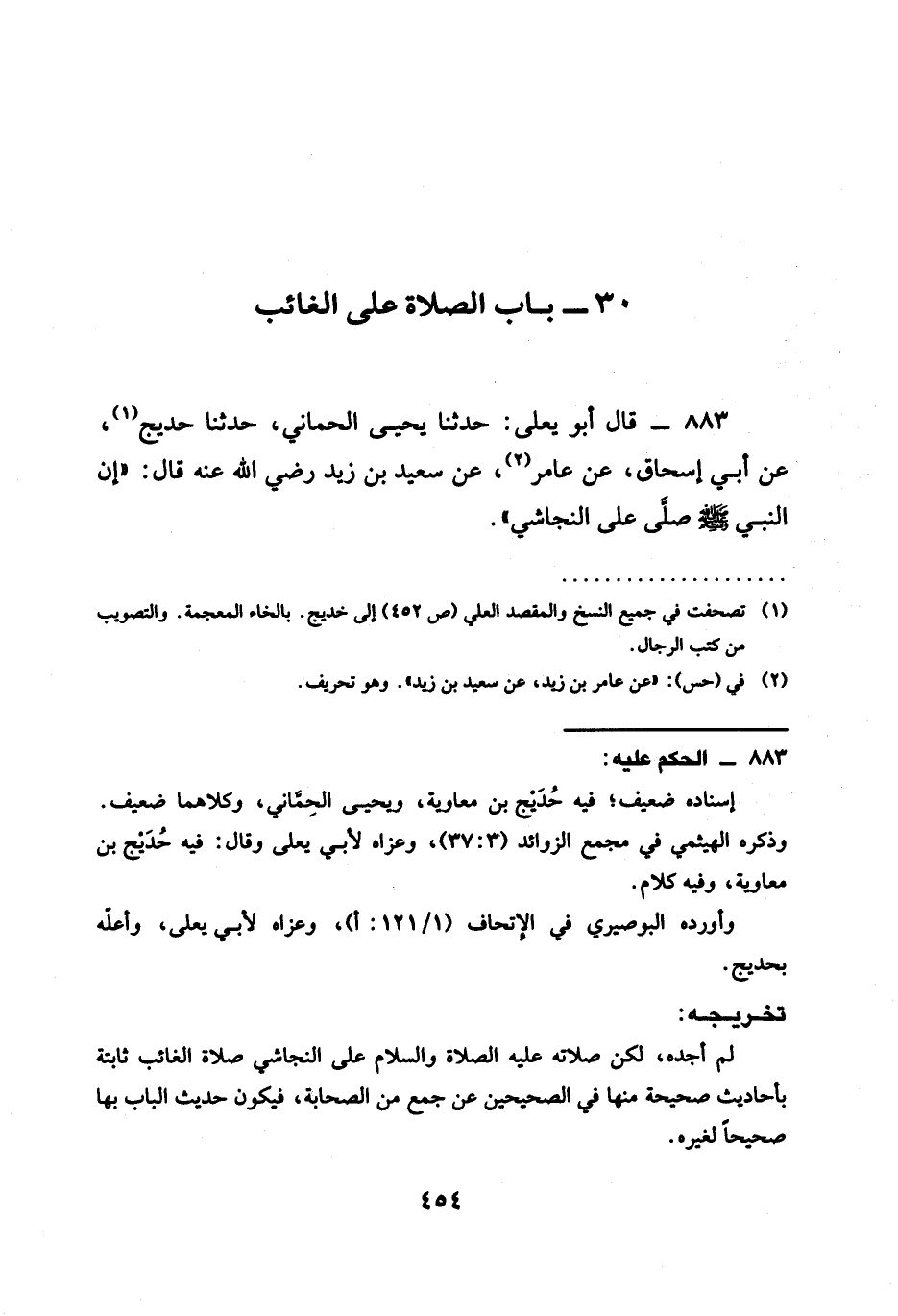 حَدَّثَنَا يَحْيَى الْحِمَّانِيُّ حَدَّثَنَا حُدَيْجُ عَنْ أَبِي إِسْحَاقَ عَنْ عَامِرٍ عَنْ سَعِيدِ بْنِ زَيْدٍ رَضِيَ الله عَنْهُ قَالَ إِنَّ النَّبِيَّ صَلَّى اللَّهُ عَلَيْهِ وَسَلَّمَ §صَلَّى عَلَى النَّجَاشِيِّ
