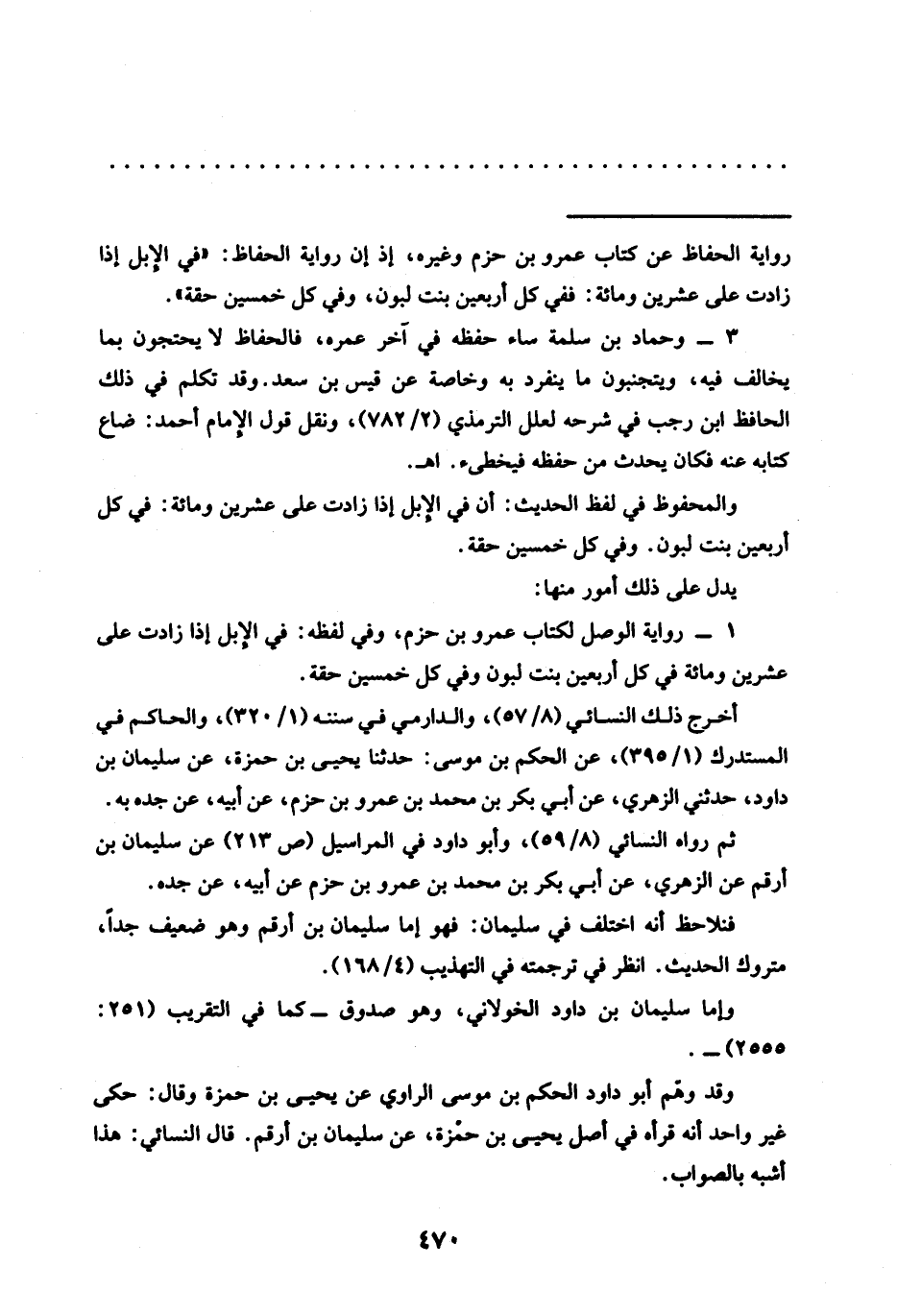 = رواية الحفاظ عن كتاب عمرو بن حزم وغيره، إذ إن رواية الحفاظ: "في الإبل إذا زادت على عشرين ومائة: ففي كل أربعين بنت لبون، وفي كل خمسين حقة".