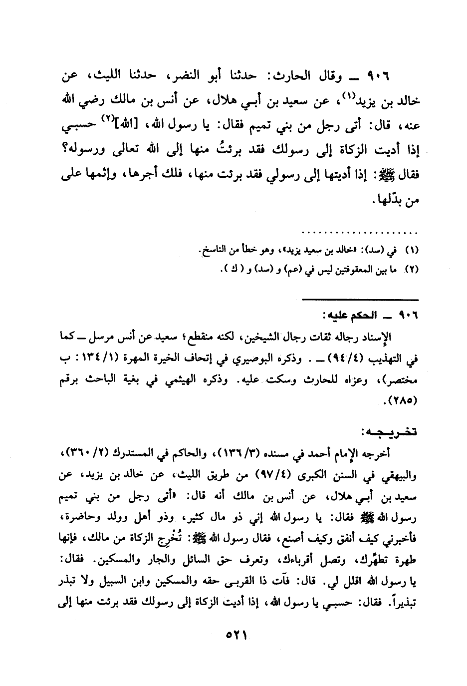 حَدَّثَنَا أَبُو النَّضْرِ حَدَّثَنَا اللَّيْثُ عَنْ خَالِدِ بْنِ يَزِيدَ عَنْ سَعِيدِ بْنِ أَبِي هِلَالٍ عَنْ أَنَسِ بْنِ مَالِكٍ رَضِيَ الله عَنْهُ قَالَ أَتَى رَجُلٌ مِنْ بَنِي تَمِيمٍ فَقَالَ يَا رَسُولَ اللَّهِ اللَّهُ حَسْبِي §إِذَا أَدَّيْتُ الزَّكَاةَ إِلَى رَسُولِكِ فَقَدْ بَرِئْتُ مِنْهَا إِلَى اللَّهِ تَعَالَى وَرَسُولِهِ فَقَالَ صَلَّى اللَّهُ عَلَيْهِ وَسَلَّمَ إِذَا أَدَّيْتَهَا إِلَى رَسُولِي فَقَدْ بَرِئْتَ مِنْهَا فَلَكَ أَجْرُهَا وَإِثْمُهَا عَلَى مَنْ بَدَّلَهَا