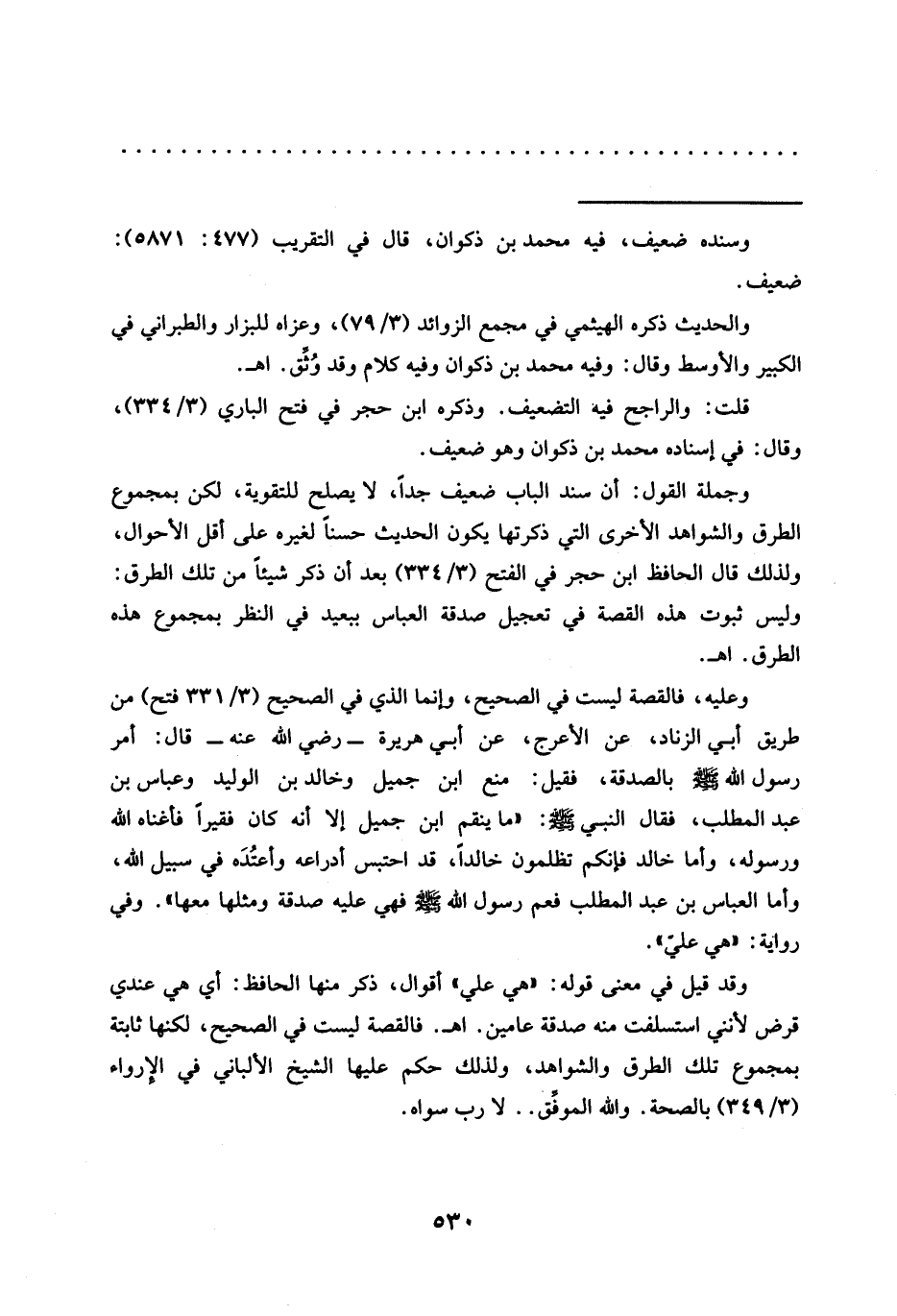 وقد قيل في معنى قوله: "هي علي" أقوال، ذكر منها الحافظ: أي هي عندي قرض لأنني استسلفت منه صدقة عامين. اهـ. فالقصة ليست في الصحيح، لكنها ثابتة بمجموع تلك الطرق والشواهد، ولذلك حكم عليها الشيخ الألباني في الأرواء (3/ 349) بالصحة. والله الموفِّق .. لا رب سواه.