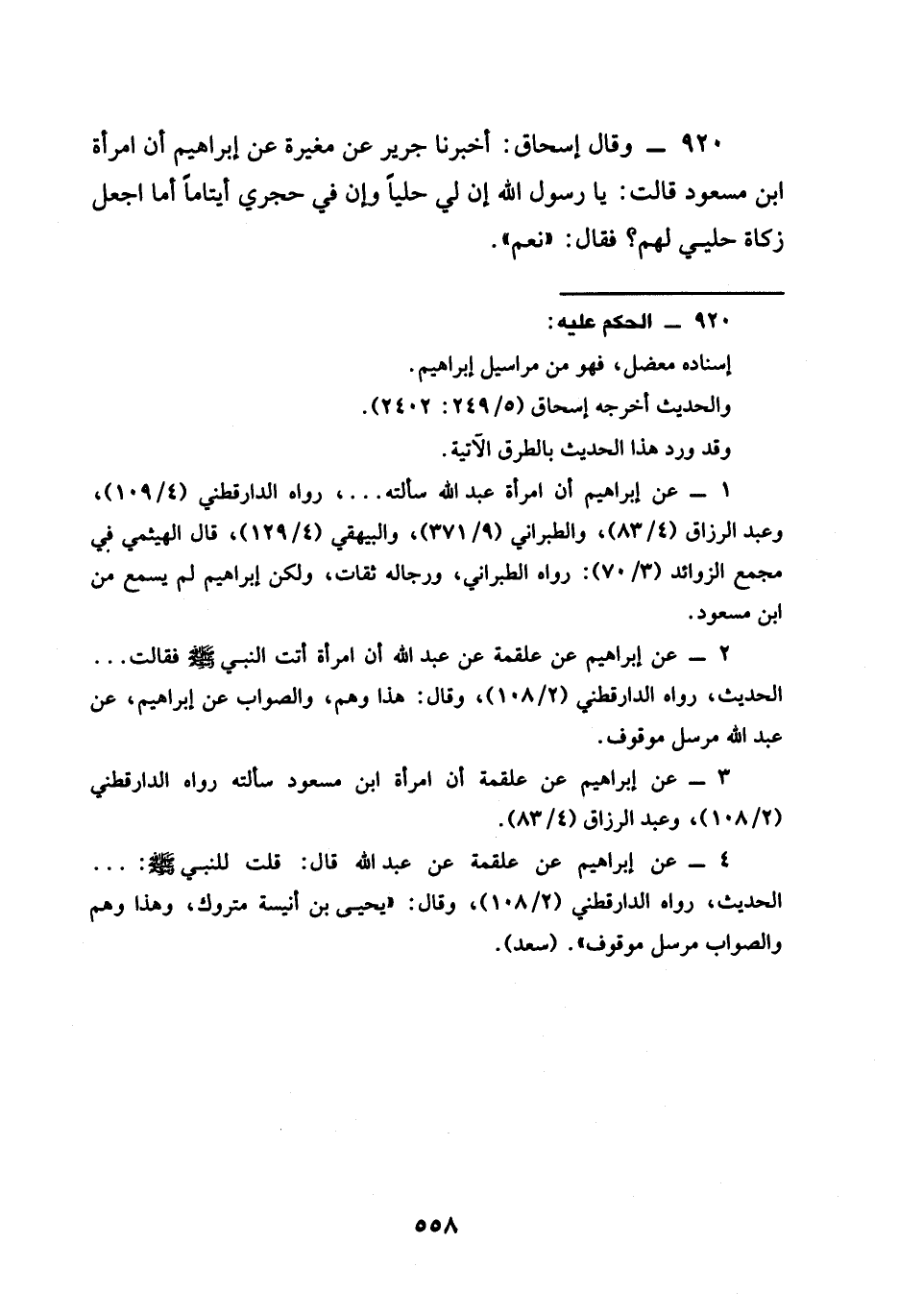 أخبرنا جَرِيرٌ عَنْ مُغِيرَةَ عَنْ إِبْرَاهِيمَ أن امْرَأَة ابْنِ مَسْعُودٍ قَالَتْ يَا رَسُولَ اللَّهِ إِنَّ §لِي حُلِيًّا وَإِنَّ فِي حِجْرِي أَيْتَامًا أَما أَجْعَلُ زَكَاةَ حليي لَهُمْ فَقَالَ نَعَمْ