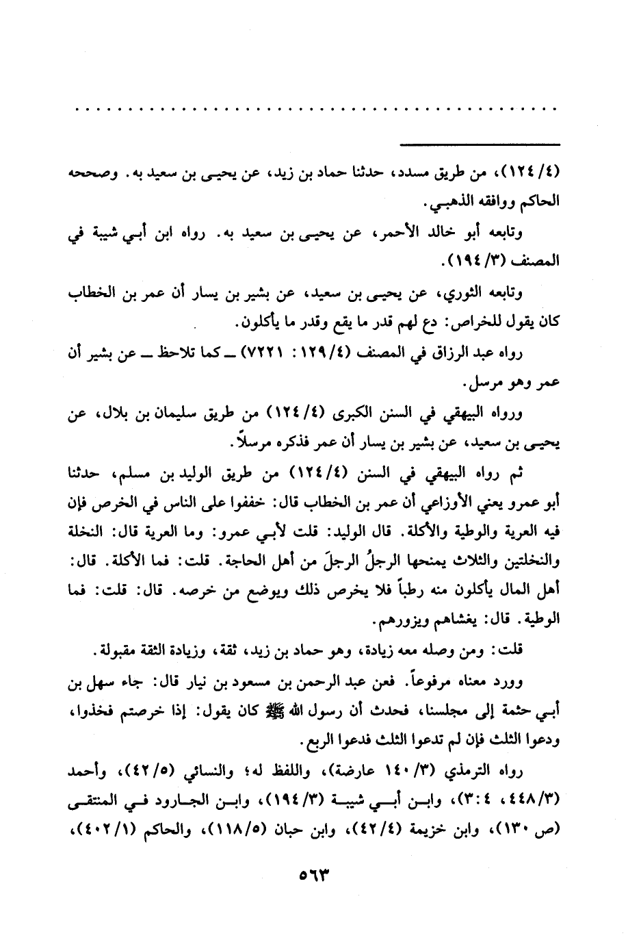 وتابعه الثوري، عَنْ يَحْيَى بْنِ سَعِيدٍ، عَنْ بُشَيْرِ بْنِ يسار أن عمر بن الخطاب كان يقول للخراص: دع لهم قدر ما يقع وقدر ما يأكلون.