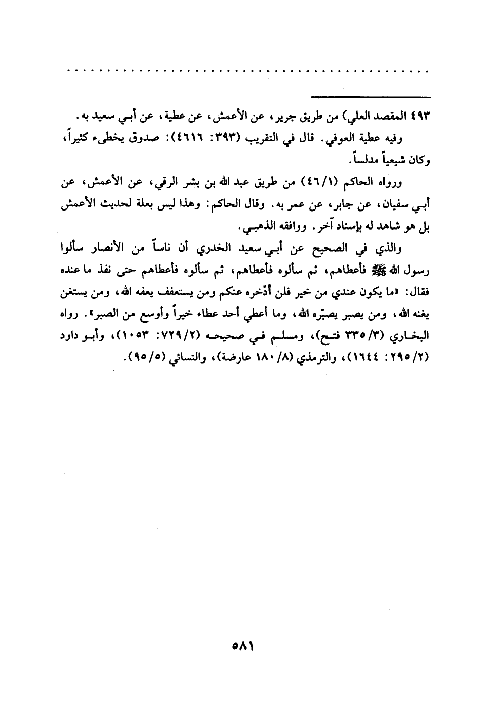 = 493 المقصد العلي) من طريق جرير، عَنِ الْأَعْمَشِ، عَنْ عَطِيَّةَ، عَنْ أَبِي سَعِيدٍ به.