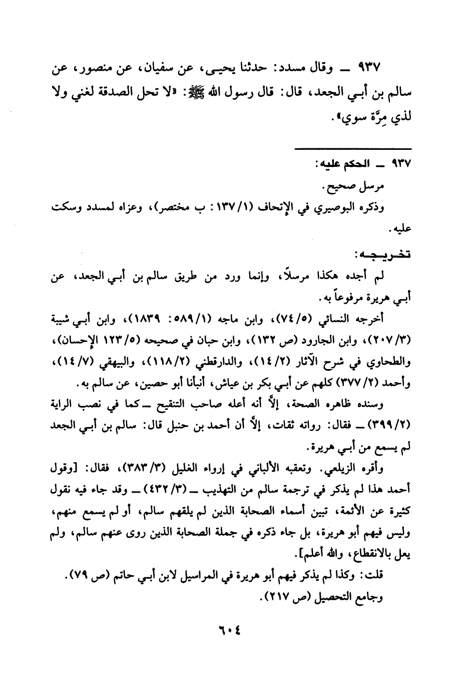 حدثنا يَحْيَى عَنْ سُفْيَانَ عَنْ مَنْصُورٍ عَنْ سَالِمِ بْنِ أَبِي الْجَعْدِ قَالَ قَالَ رَسُولُ اللَّهِ صَلَّى اللَّهُ عَلَيْهِ وَسَلَّمَ §لَا تَحِلُّ الصَّدَقَةُ لِغَنِيٍّ وَلَا لِذِي مِرَّةٍ سَوِيٍّ