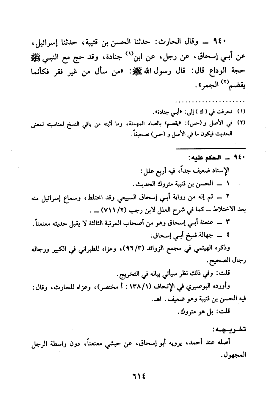 حَدَّثَنَا الْحَسَنُ بْنُ قُتَيْبَةِ حَدَّثَنَا إِسْرَائِيلُ عَنْ أَبِي إِسْحَاقَ عَنْ رَجُلٍ عَنْ ابْنِ جُنَادَةَ وَقَدْ حَجَّ مَعَ النَّبِيِ صَلَّى اللَّهُ عَلَيْهِ وَسَلَّمَ حَجَّةَ الْودََاعِ قَالَ قَالَ رَسُولُ اللَّهِ صَلَّى اللَّهُ عَلَيْهِ وَسَلَّمَ §مَنْ سَأَلَ مِنْ غَيْرِ فَقْرٍ فَكَأَنَّمَا يَقْضِمُ الْجَمَّرَ