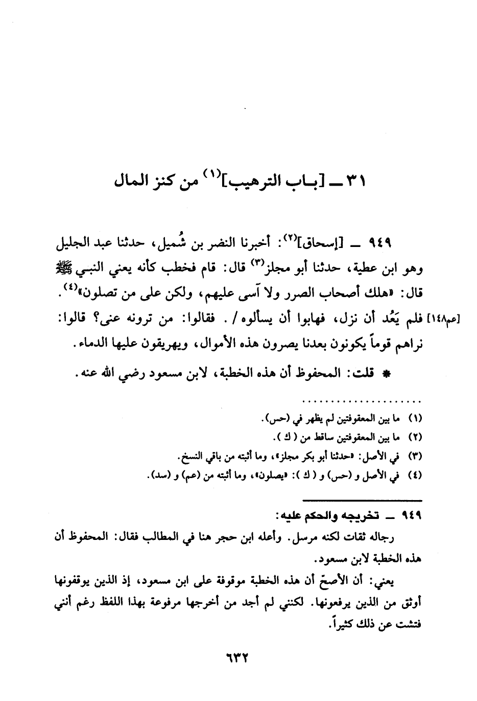 قُلْتُ الْمَحْفُوظُ أَنَّ هَذِهِ الْخُطْبَةَ لابن مسعود رَضِيَ الله عَنْه