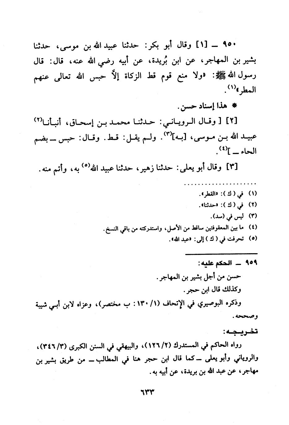 حَدَّثَنَا عُبَيْدُ اللَّهِ بْنُ مُوسَى حدثنا بَشِيرُ بْنُ الْمُهَاجِرِ عَنِ ابْنِ بُرَيْدَةَ عن أبيه رَضِيَ الله عَنْه قَالَ قَالَ رَسُولُ اللَّهِ صَلَّى اللَّهُ عَلَيْهِ وَسَلَّمَ §وَلَا مَنَعَ قَوْمٌ قَطُّ الزَّكَاةَ إِلَّا حَبَسَ اللَّهُ تَعَالَى عَنْهُمُ الْمَطَرَ