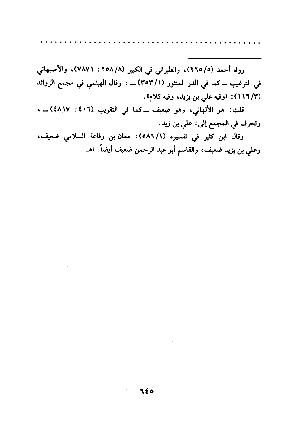 وقال ابن كثير في تفسيره (1/ 586): معان بن رفاعة السلامي ضعيف، وعلي بن يزيد ضعيف، والقاسم أبو عبد الرحمن ضعيف أيضًا. اهـ.
