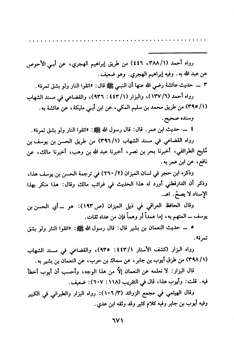 3 - حديث عائشة رضي الله عنها أن النبي -صلى الله عليه وسلم- قال: "اتقوا النار ولو بشق تمرة". رواه أحمد (6/ 137)، والبزار (1/ 443: 936)، والقضاعي في مسند الشهاب (1/ 395) من طريق محمَّد بن سليم المكي، عن ابن أبي مليكة، عن عائشة به.