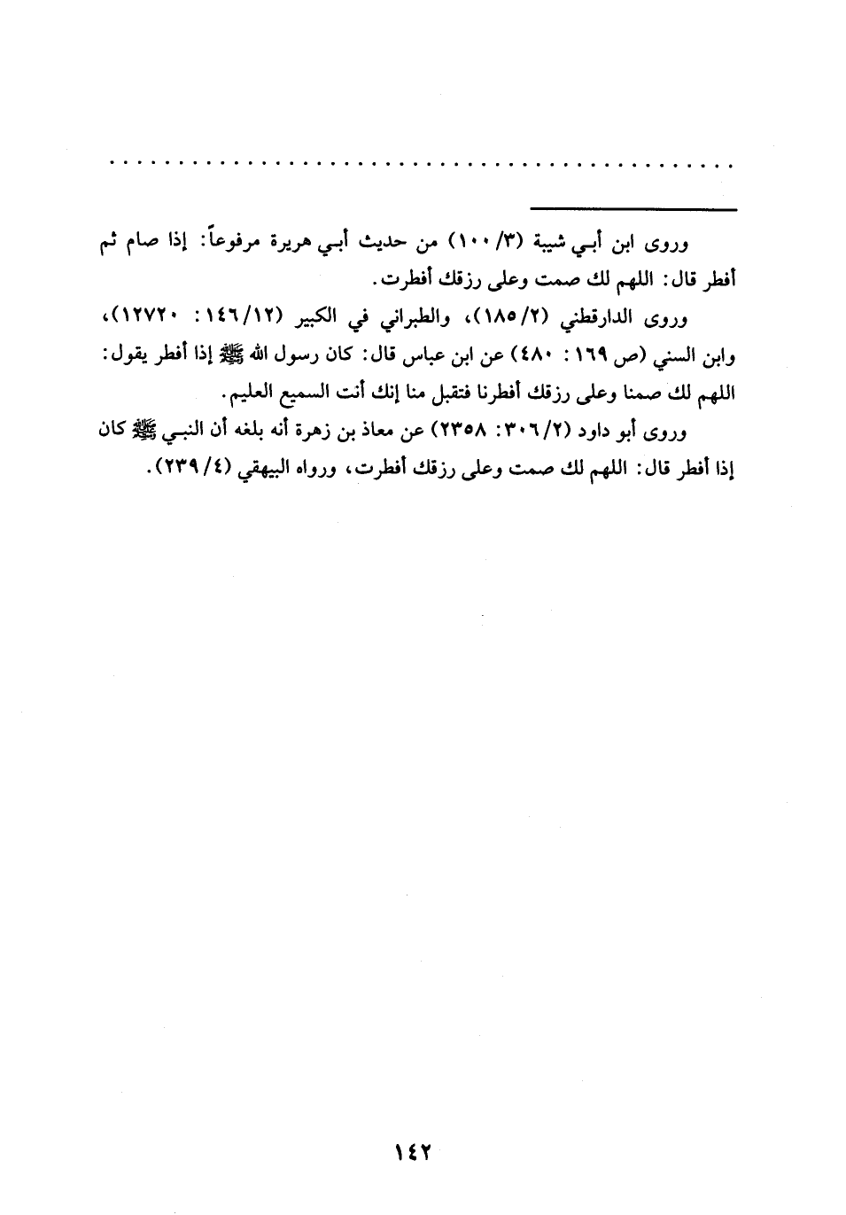 وروى الدارقطني (2/ 185)، والطبراني في الكبير (12/ 146: 12720)، وابن السني (ص 169: 480) عَنِ ابْنِ عَبَّاسٍ قَالَ: كَانَ رَسُولُ اللَّهِ -صلى الله عليه وسلم- إذا أفطر يقول: