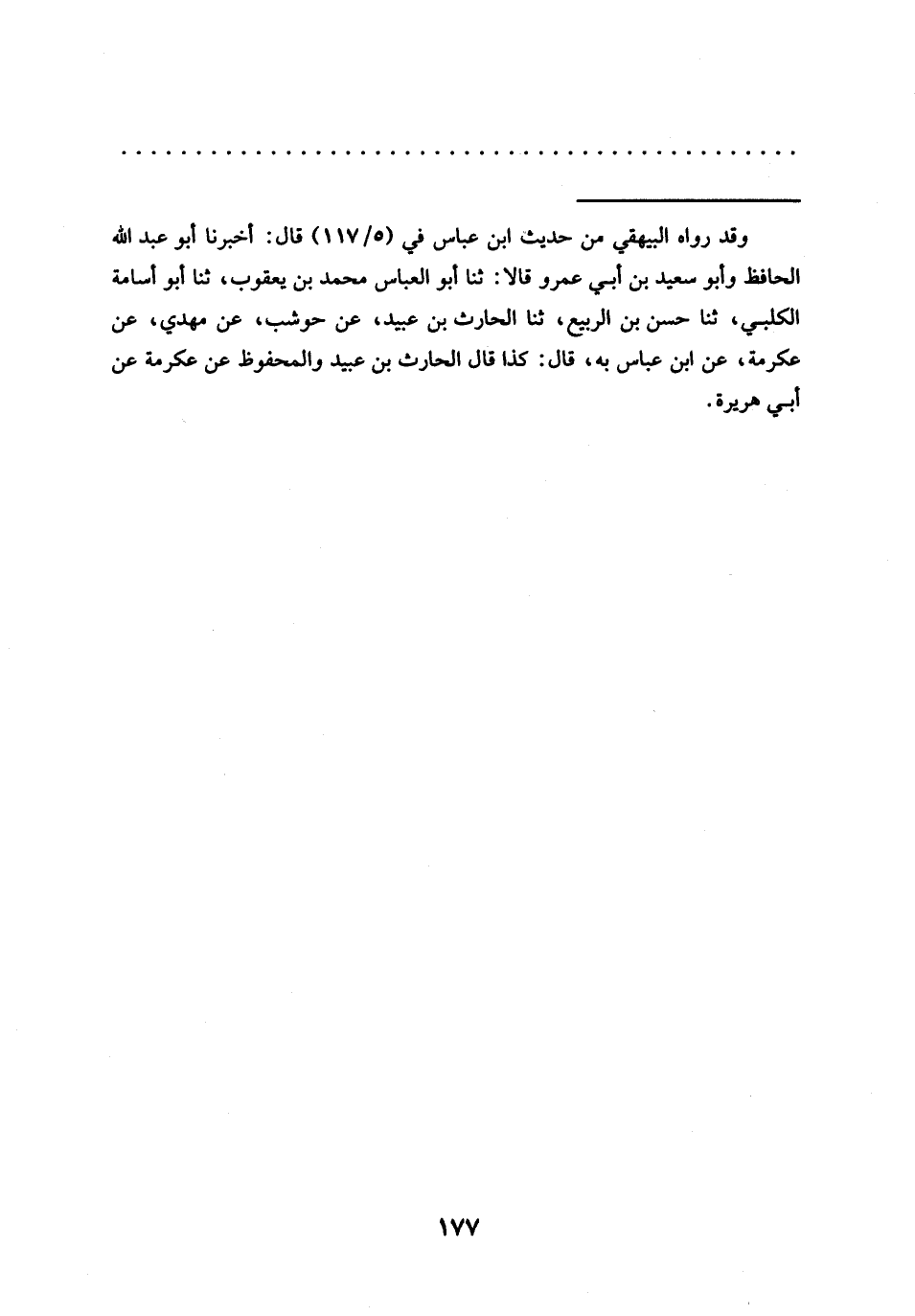 = وقد رواه البيهقي من حديث ابن عباس في (5/ 117) قال: أخبرنا أبو عبد الله الحافظ وأبو سعيد بن أبي عمرو قالا: ثنا أَبُو الْعَبَّاسِ محمَّد بْنُ يَعْقُوبَ، ثنا أَبُو أسامة الكلبي، ثنا حسن بن الربيع، ثنا الحارث بن عبيد، عن حوشب، عن مهدي، عن عكرمة، عن ابن عباس به، قال: كذا قال الحارث بن عبيد والمحفوظ عن عكرمة عن أبي هريرة.