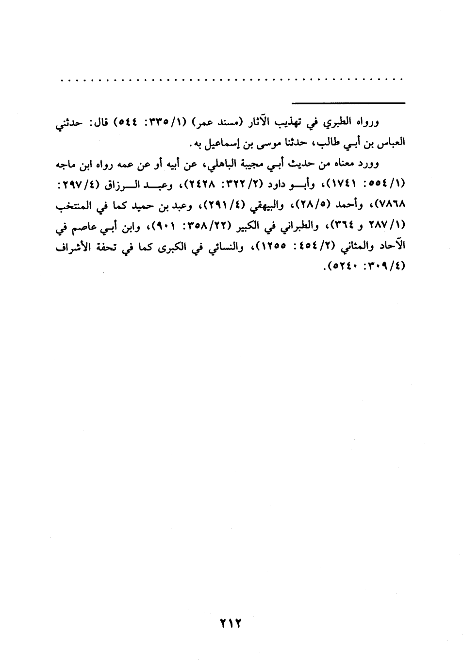 وورد معناه من حديث أبي مجيبة الباهلي، عن أبيه أو عن عمه رواه ابن ماجه (1/ 554: 1741)، وأبو داود (2/ 322: 2428)، وعبد الرزاق (4/ 297: 7868)، وأحمد (5/ 28)، والبيهقي (4/ 291)، وعبد بن حميد كما في المنتخب (1/ 287 و 364)، والطبراني في الكبير (22/ 358: 901)، وابن أبي عاصم في الآحاد والمثاني (2/ 454: 1255)، والنسائي في الكبرى كما في تحفة الأشراف (4/ 309: 5240).