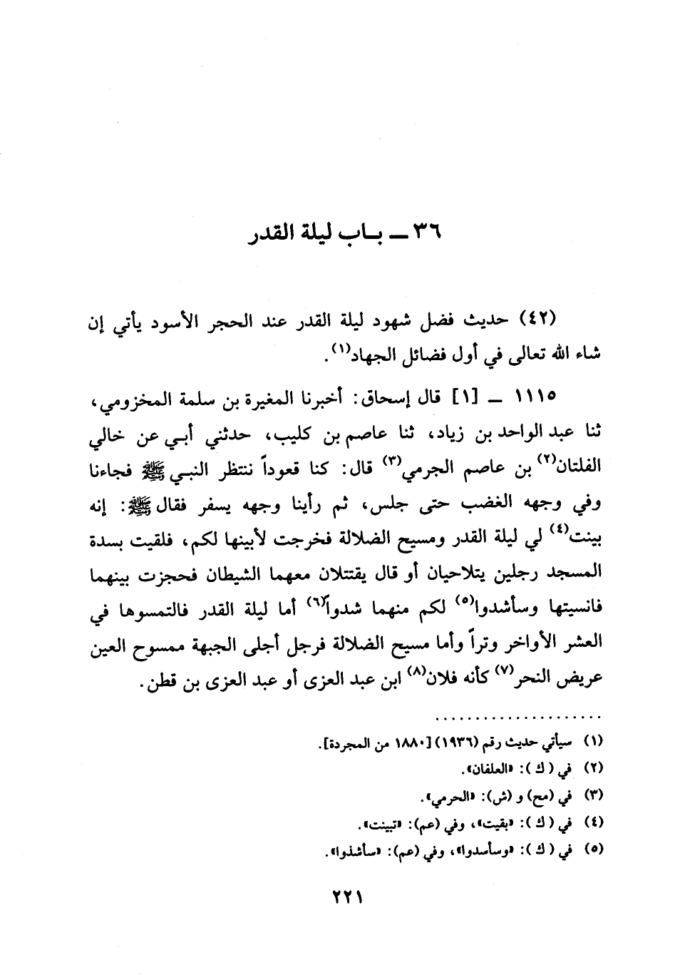 (42) حَدِيثُ فَضْلِ شُهُودِ لَيْلَةِ الْقَدْرِ عِنْدَ الْحَجَرِ الأسود ياتي إن شاء الله تعالى فِي أَوَّلِ فَضَائِلِ الْجِهَادِ