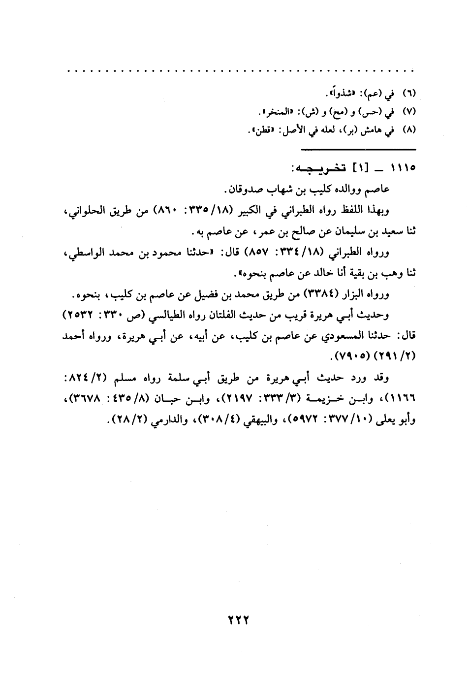 وحديث أبي هريرة قريب من حديث الفلتان رواه الطيالسي (ص 330: 2532) قال: حدثنا المسعودي عَنْ عَاصِمِ بْنِ كُلَيْبٍ، عَنْ أَبِيهِ، عَنْ أبي هريرة، ورواه أحمد (2/ 291) (7905).