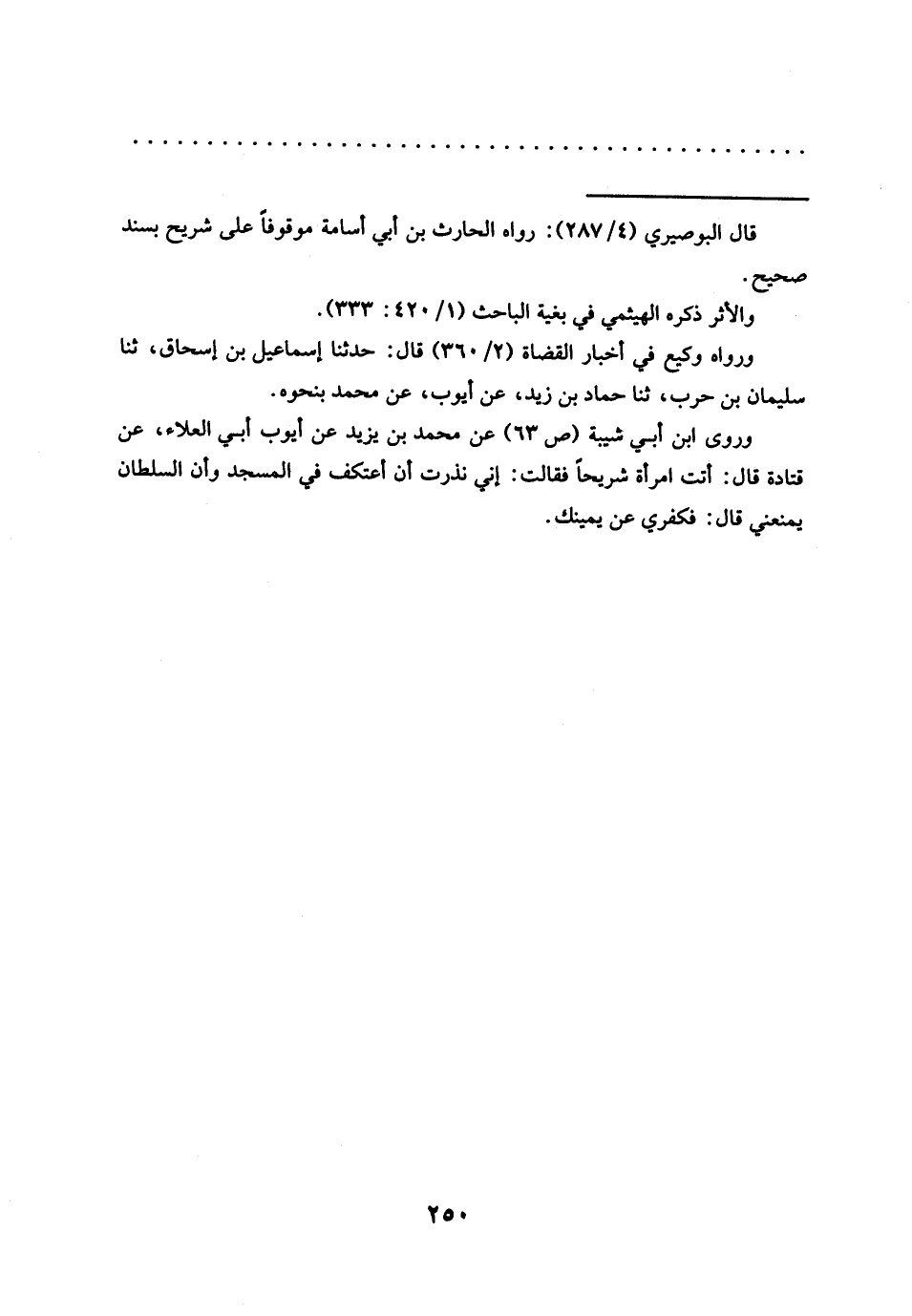 = قال البوصيري (4/ 287): رواه الحارث بن أبي أسامة موقوفًا على شريح بسند صحيح.