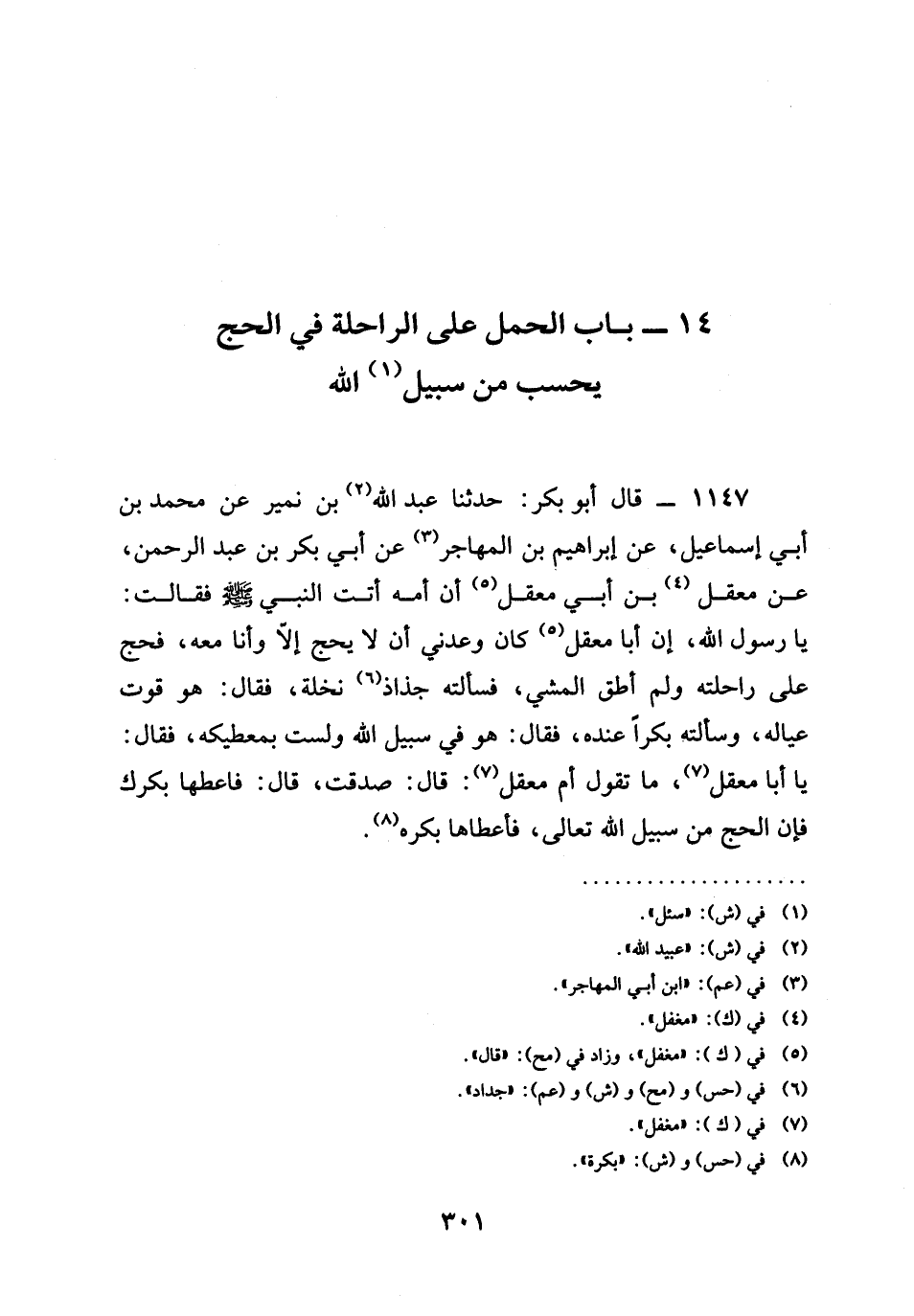 (14 - بَابُ الْحَمْلِ عَلَى الرَّاحِلَةِ فِي الْحَجِّ يَحْسِبُ مِنْ سَبِيلِ اللَّهِ)