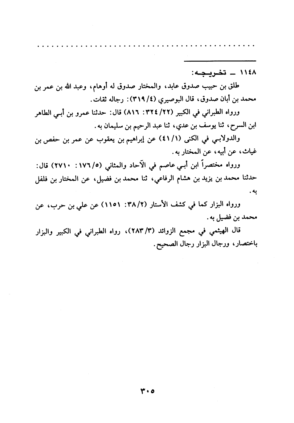 طلق بن حبيب صدوق عابد، والمختار صدوق له أوهام، وعبد الله بن عمر بن محمَّد بن أبان صدوق، قال البوصيري (4/ 319): رجاله ثقات.