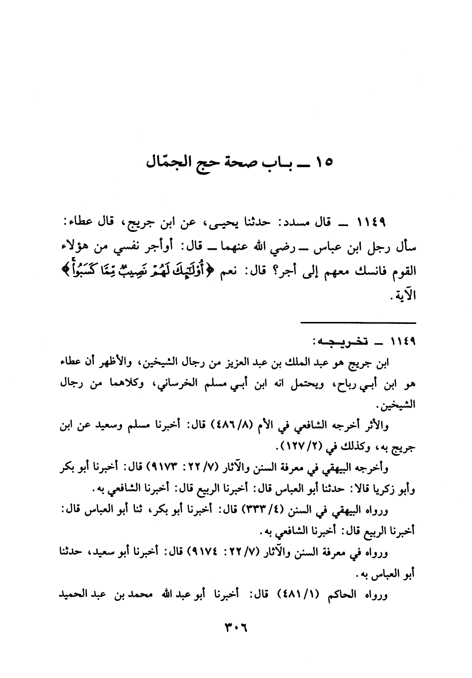 1149 - قَالَ مُسَدَّدٌ حَدَّثَنَا يَحْيَى عَنِ ابْنِ جُرَيْجٍ قَالَ عَطَاءٌ سَأَلَ رَجُلٌ ابن عباس رَضِيَ الله عَنْهما قَالَ §أَوَاجِرُ نَفْسِي مِنْ هَؤُلَاءِ الْقَوْمِ فَأَنْسُكُ مَعَهُمْ أَلِي أَجْرٌ قَالَ نَعَمْ {أُولَئِكَ لَهُمْ نَصِيبٌ مِمَّا كَسَبُوا} الْآيَةَ