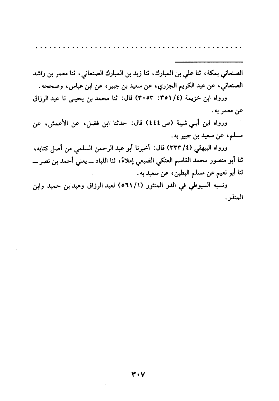 = الصنعاني بمكة، ثنا علي بن المبارك، ثنا زيد بن المبارك الصنعاني، ثنا معمر بن راشد الصنعاني، عَنْ عَبْدِ الْكَرِيمِ الْجَزَرِيِّ، عَنْ سَعِيدِ بْنِ جُبَيْرٍ، عَنِ ابْنِ عَبَّاسٍ، وصححه.