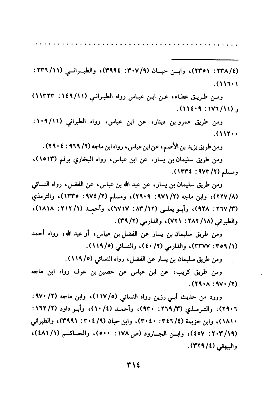 ومن طريق سُلَيْمَانَ بْنِ يَسَارٍ، عَنْ عَبْدِ اللَّهِ بْنِ عباس، عن الفضل، رواه النسائي (8/ 227)، وابن ماجه (2/ 971: 2909)، ومسلم (2/ 974: 1335)، والترمذي (3/ 267: 928)، وأبو يعلى (12/ 83: 6717)، وأحمد (1/ 212: 1818)، والطبراني (18/ 282: 721)، والدارمي (2/ 39).