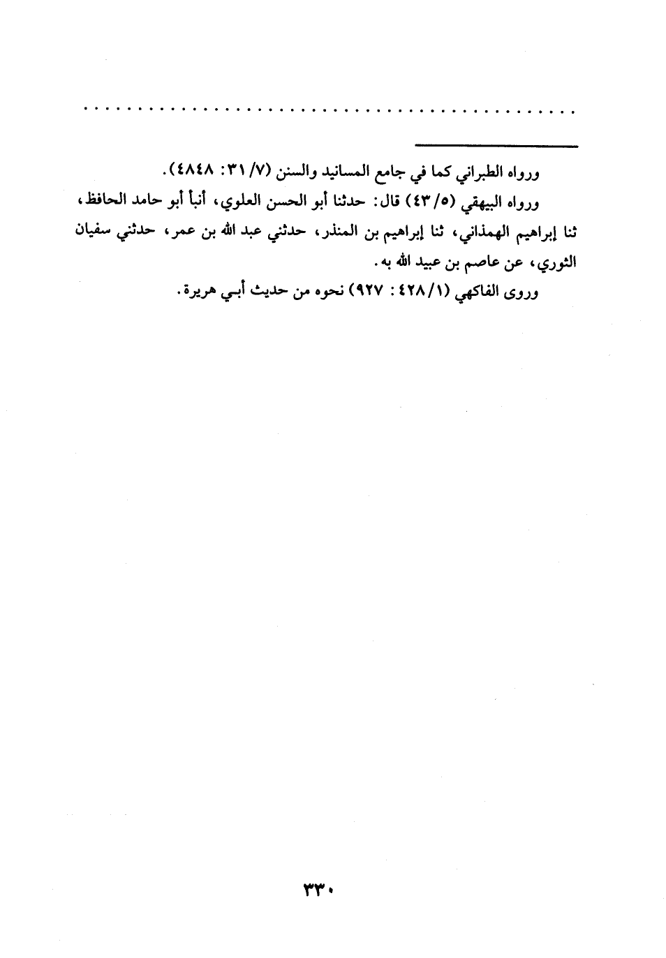 ورواه البيهقي (5/ 43) قال: حدثنا أبو الحسن العلوي، أنبأ أبو حامد الحافظ، ثنا إبراهيم الهمذاني، ثنا إبراهيم بن المنذر، حدثني عبد الله بن عمر، حدثني سفيان الثوري، عن عاصم بن عبيد الله به.