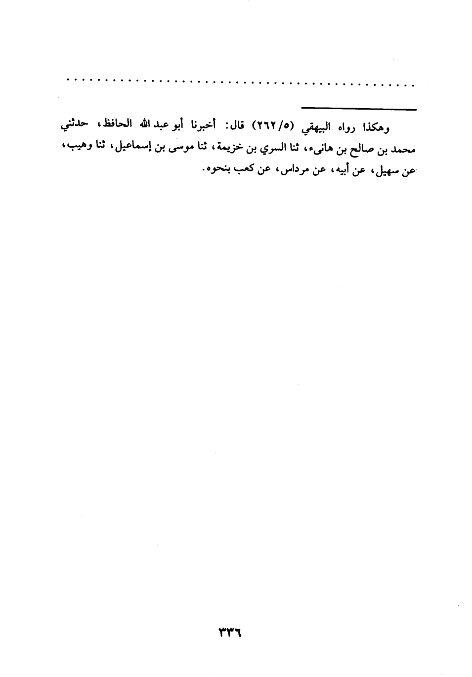 = وهكذا رواه البيهقي (5/ 262) قال: أخبرنا أبو عبد الله الحافظ، حدثني محمَّد بن صالح بن هانئ، ثنا السري بن خزيمة، ثنا موسى بن إسماعيل، ثنا وهيب، عن سهيل، عن أبيه، عن مرداس، عن كعب بنحوه.