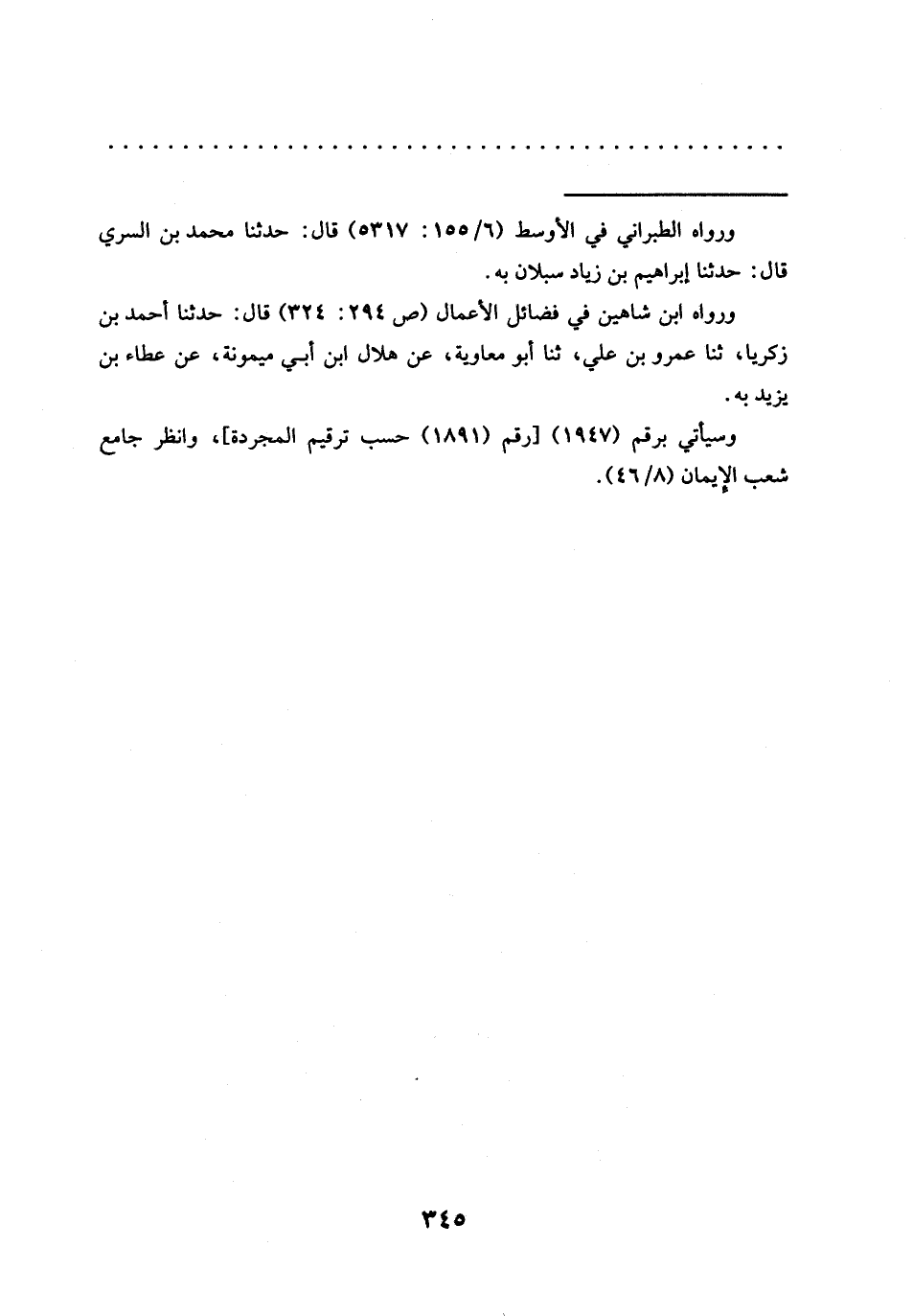 ورواه ابن شاهين في فضائل الأعمال (ص 294: 324) قال: حدثنا أحمد بن زكريا، ثنا عمرو بن علي، ثنا أبو معاوية، عن هلال ابن أبي ميمونة، عن عطاء بن يزيد به.