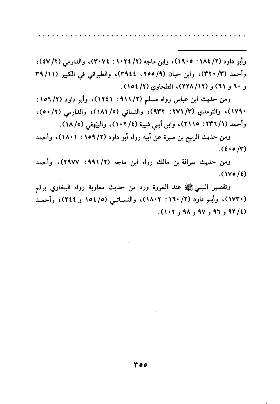 وتقصير النبي -صلى الله عليه وسلم- عند المروة ورد من حديث معاوية رواه البخاري برقم (1730)، وأبو داود (2/ 160: 1802)، والنسائي (5/ 154 و 244)، وأحمد (4/ 92 و 96 و 97 و 98 و 102).