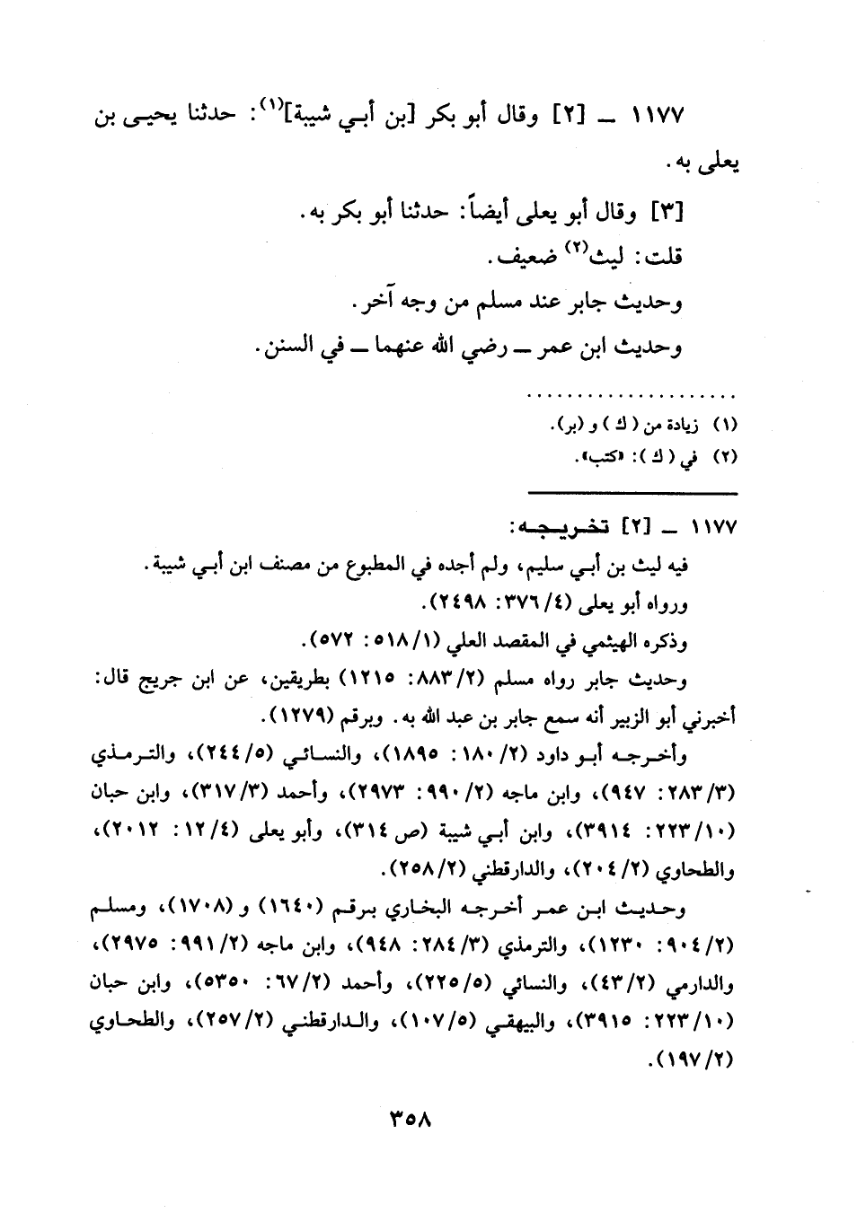 1177 - [2] وَقَالَ أَبُو بَكْرِ [بْنُ أَبِي شَيْبَةَ] (¬1): حَدَّثَنَا يَحْيَى بْنُ يَعْلَى بِهِ.