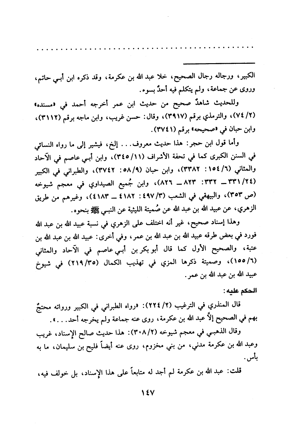 وهذا إسناد صحيح، غير أنه اختلف على الزهري في نسبة عبيد الله بن عبد الله فورد في بعض طرقه عبيد الله بن عبد الله بن عمر، وفي أخرى: عُبَيْدِ اللَّهِ بْنِ عَبْدِ اللَّهِ بْنِ عُتْبَةَ، والصحيح الأول كما قال أبو بكر بن أبي عاصم في الآحاد والمثاني (6/ 155)، وصميتة ذكرها المزي في تهذيب الكمال (35/ 219) في شيوخ عبيد الله بن عبد الله بن عمر.