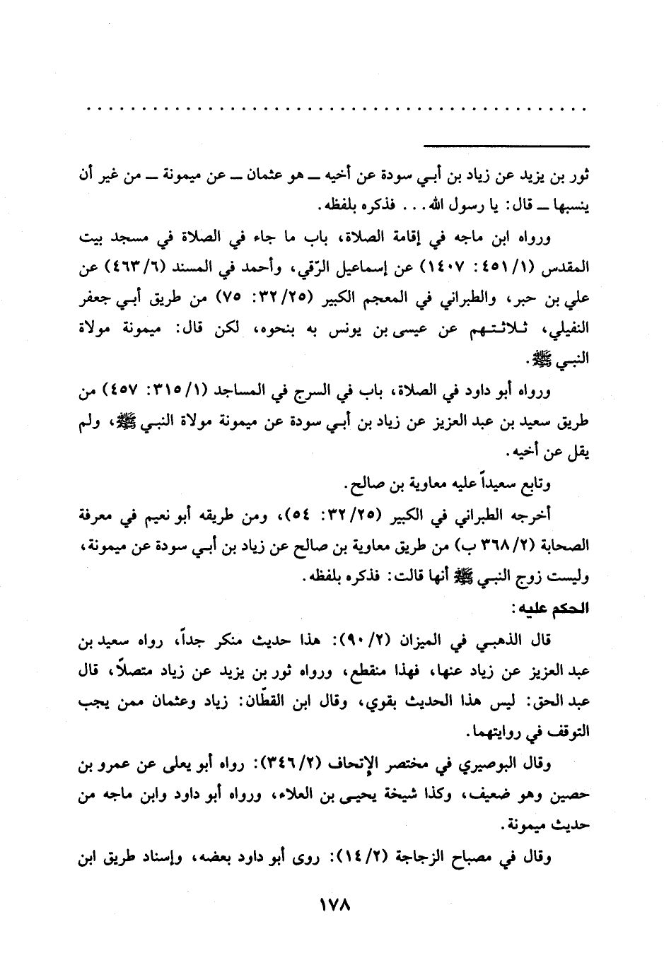 = ثَوْرُ بْنُ يَزِيدَ عَنْ زِيَادِ بْنِ أَبِي سودة عن أخيه -هو عثمان- عن ميمونة -من غير أن ينسبها- قال: يا رسول الله ... فذكره بلفظه.
