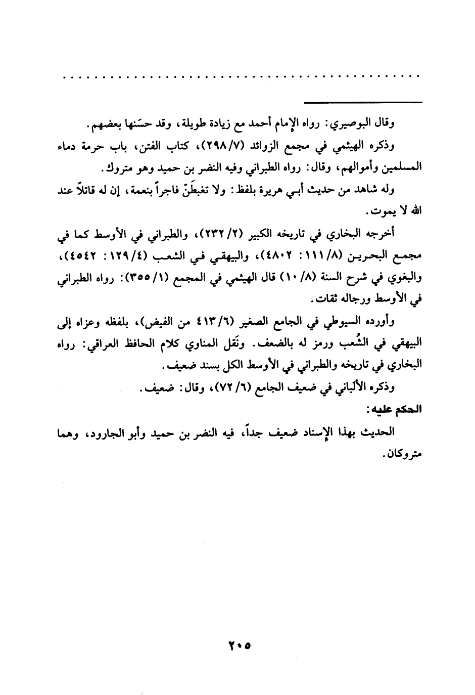 وذكره الهيثمي في مجمع الزوائد (7/ 298)، كتاب الفتن، باب حرمة دماء المسلمين وأموالهم، وقال: رواه الطبراني وفيه النضر بن حميد وهو متروك.