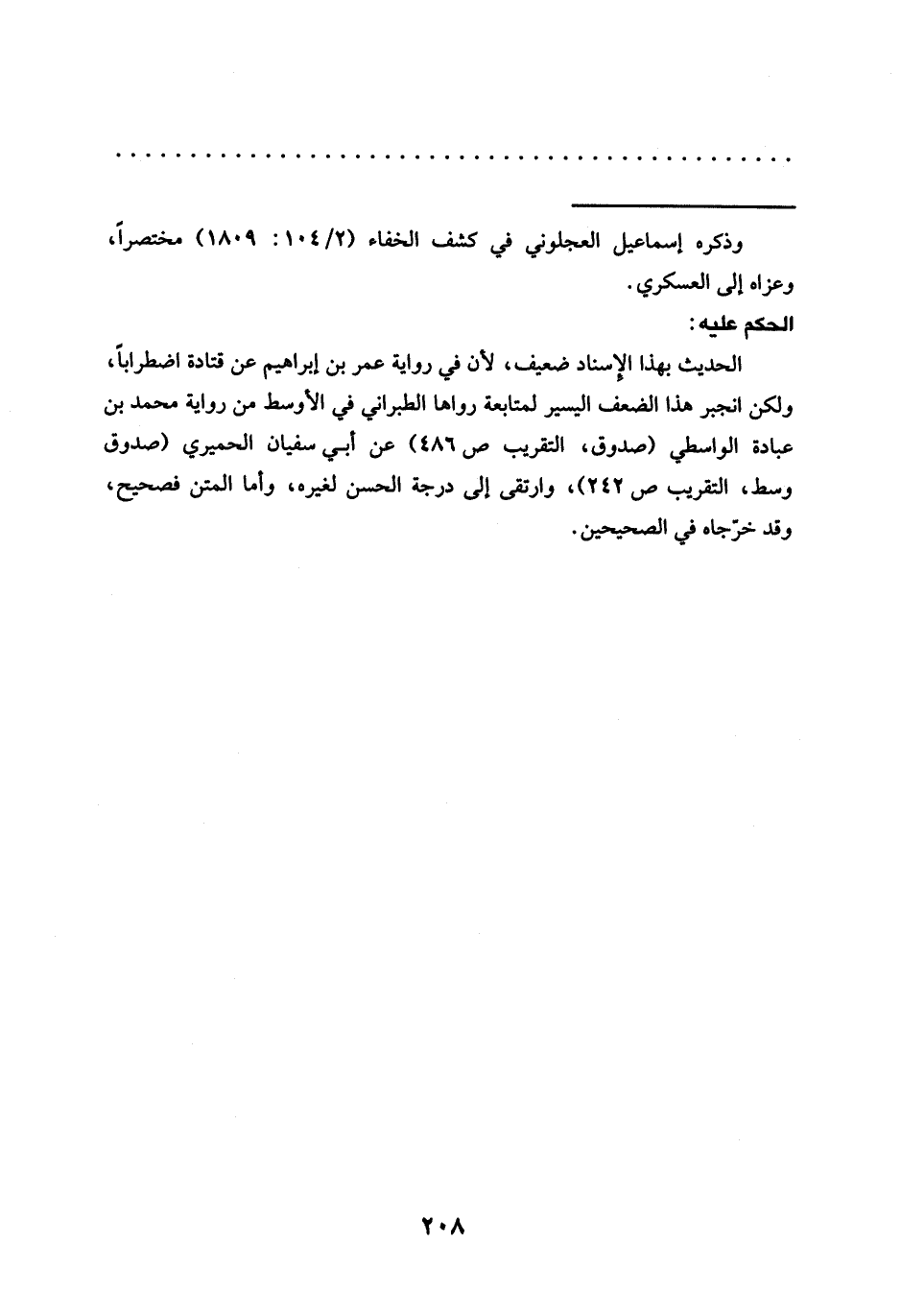 = وذكره إسماعيل العجلوني في كشف الخفاء (2/ 104: 1809) مختصرًا، وعزاه إلى العسكري.