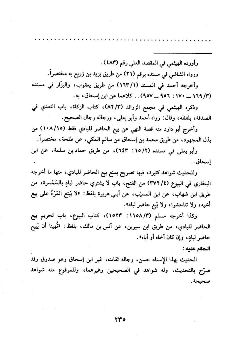 وأخرج أبو داود منه قصة النهي عن بيع الحاضر للبادي فقط (15/ 108) من بذل المجهود، من طريق محمد بن إسحاق عن سالم المكي، عن طلحة، مختصرًا.