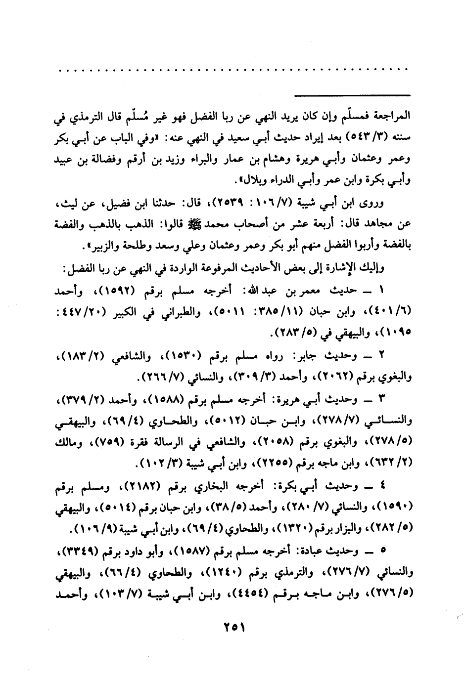 = المراجعة فمسلّم وإن كان يريد النهي عن ربا الفضل فهو غير مُسلّم قال الترمذي في سننه (3/ 543) بعد إيراد حديث أبي سعيد في النهي عنه: "وفي الباب عن أبي بكر وعمر وعثمان وأبي هريرة وهشام بن عمار والبراء وزيد بن أرقم وفضالة بن عبيد وأبي بكرة وابن عمر وأبي الدراء وبلال".