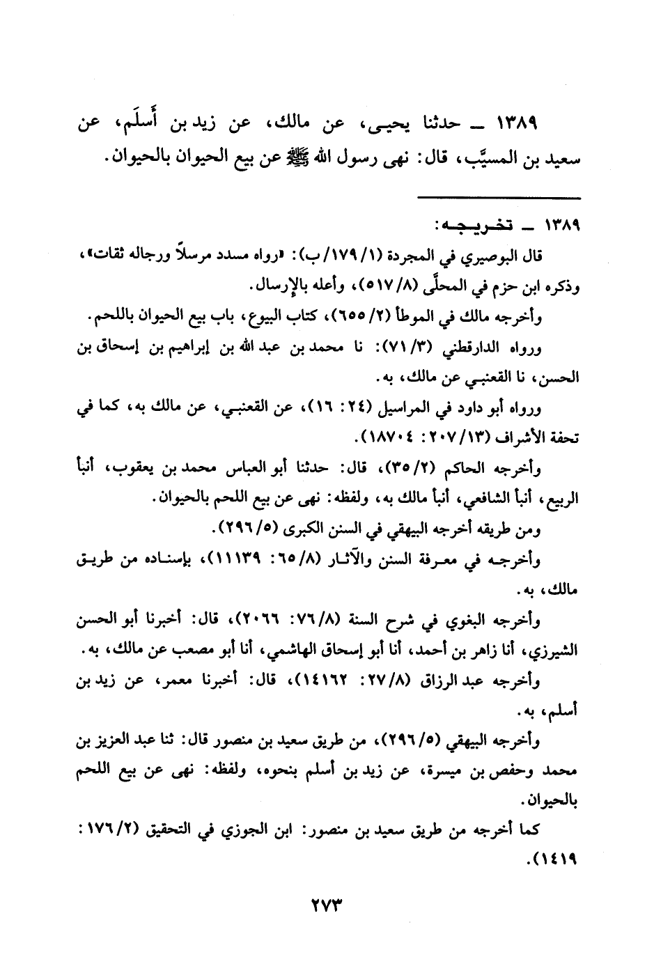 1389 - حَدَّثَنَا يَحْيَى عَنْ مَالِكِ عَنْ زَيْدِ بْنِ أَسْلَمَ عَنْ سَعِيدِ بْنِ الْمُسَيِّبِ قَالَ §نَهَى رَسُولُ اللَّهِ صَلَّى اللَّهُ عَلَيْهِ وَسَلَّمَ عَنْ بَيْعِ الْحَيَوَانِ بِالْحَيَوَانِ