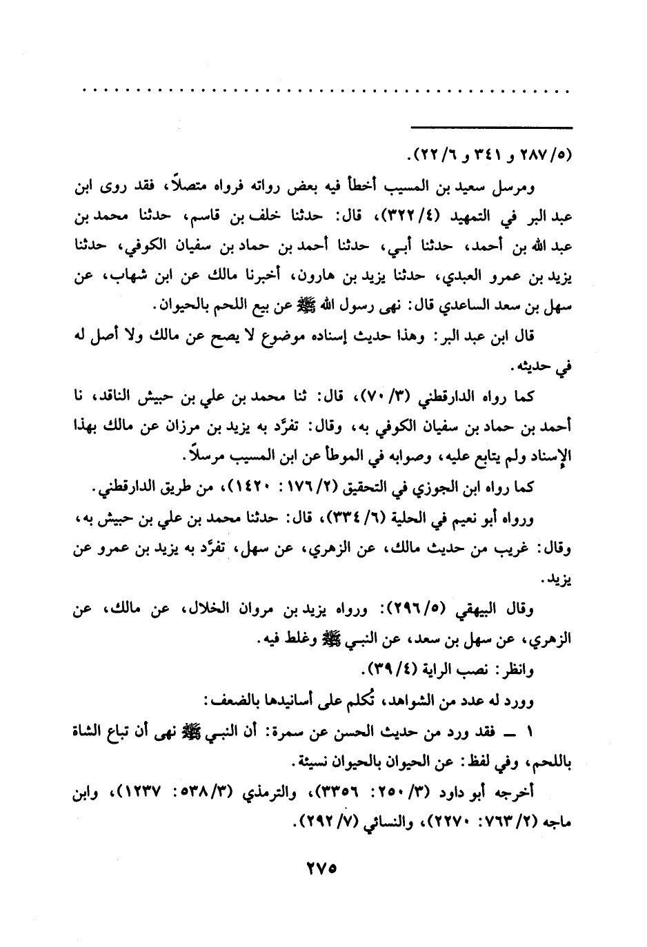 ومرسل سعيد بن المسيب أخطأ فيه بعض رواته فرواه متصلًا، فقد روى ابن عبد البر في التمهيد (4/ 322)، قال: حدثنا خلف بن قاسم، حدثنا محمد بن عبد الله بن أحمد، حدثنا أبي، حدثنا أحمد بن حماد بن سفيان الكوفي، حدثنا يزيد بن عمرو العبدي، حدثنا يزيد بن هارون، أخبرنا مالك عن ابن شهاب، عن سهل بن سعد الساعدي قال: نهى رسول الله عن بيع اللحم بالحيوان.