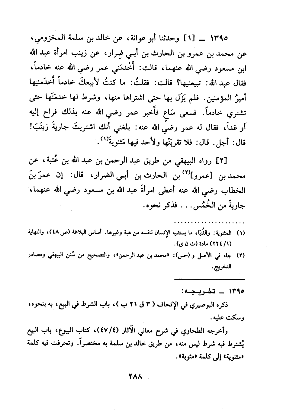 [2] رَوَاهُ الْبَيْهَقِيُّ مِنْ طَرِيقِ عَبْدِ الرَّحْمَنِ بْنِ عَبْدِ اللَّهِ بْنِ عُتْبَةَ عَنْ محمد بن عمرو بْنِ الْحَارِثِ بن أبي الضرار قال أَنَّ عُمَرَ بن الخطاب رَضِيَ الله عَنْه أَعْطَى امْرَأَةَ عَبْدِ اللَّهِ بن مسعود رَضِيَ الله عَنْهما جَارِيَةً مِنَ الْخُمُسِ فَذَكَرَ نَحْوَهُ
