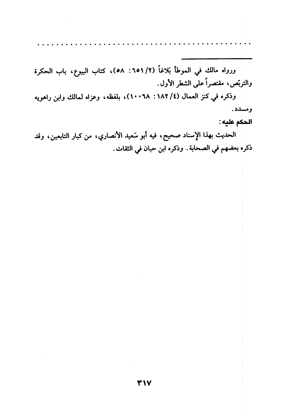 وذكره في كنز العمال (4/ 182: 10068)، بلفظه، وعزاه لمالك وابن راهويه ومسدد.