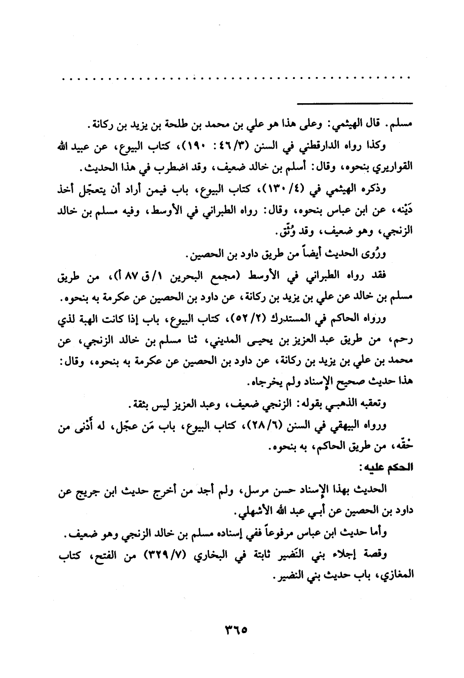 وكذا رواه الدارقطني في السنن (3/ 46: 190)، كتاب البيوع، عن عبيد الله القواريري بنحوه، وقال: أسلم بن خالد ضعيف، وقد اضطرب في هذا الحديث.