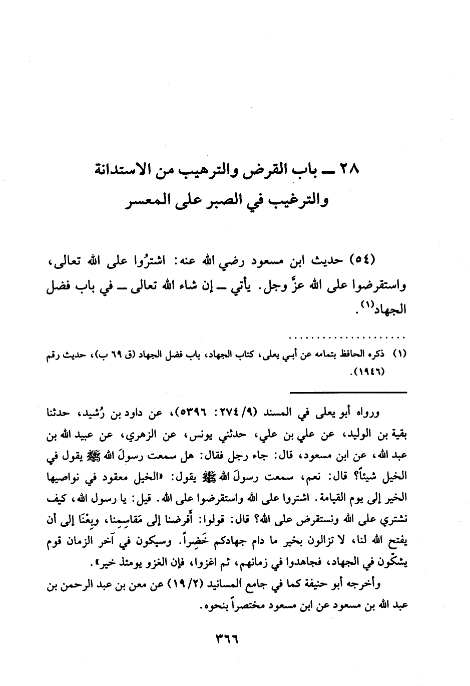 (54) حَدِيثُ ابن مسعود رَضِيَ الله عَنْه اشْتَرُوا على الله تعالى وَاسْتَقْرِضُوا على الله عز وجل يأتي إن شاء الله تعالى فِي بَابِ فَضْلِ الْجِهَادِ