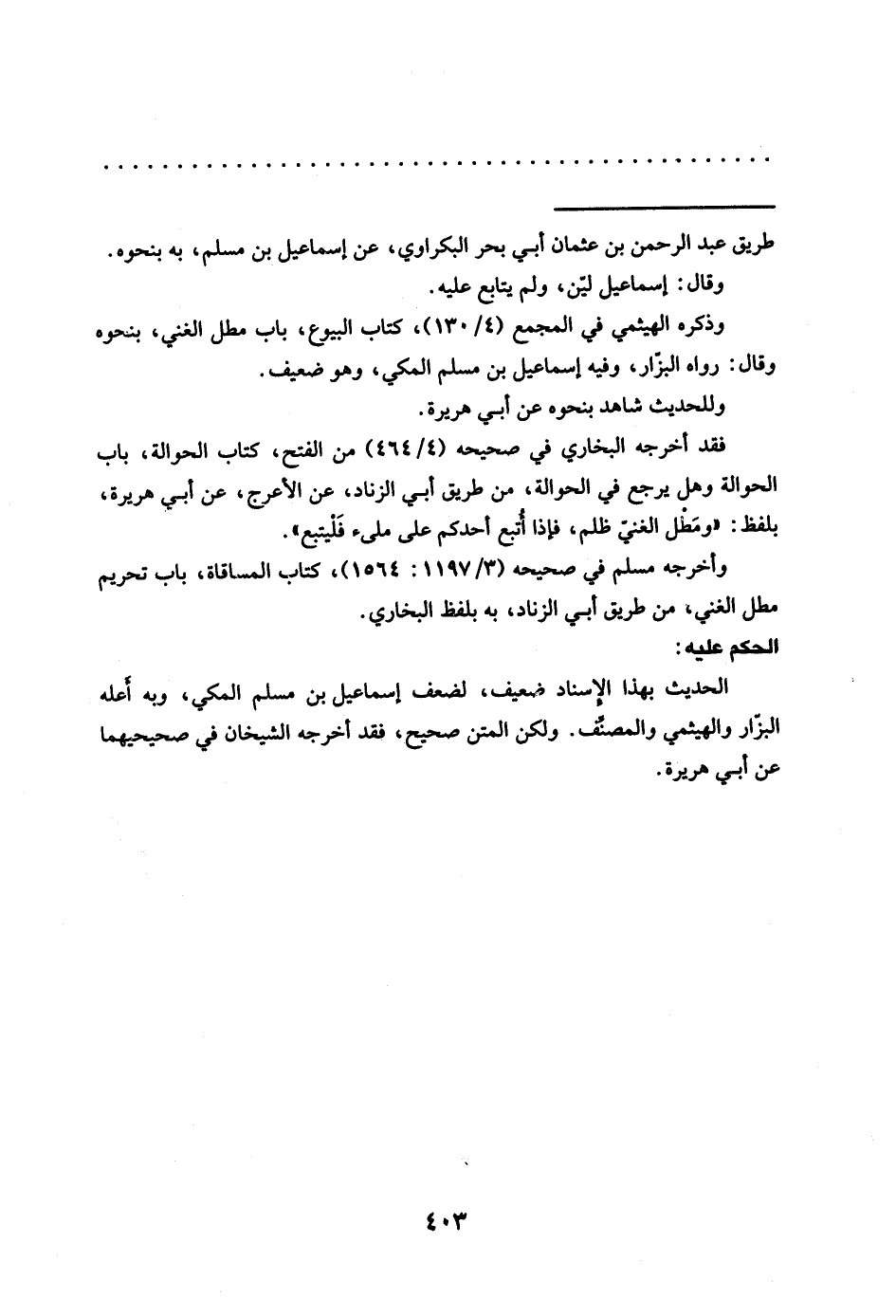وأخرجه مسلم في صحيحه (3/ 1197: 1564)، كتاب المساقاة، باب تحريم مطل الغني، من طريق أبي الزناد، به بلفظ البخاري.