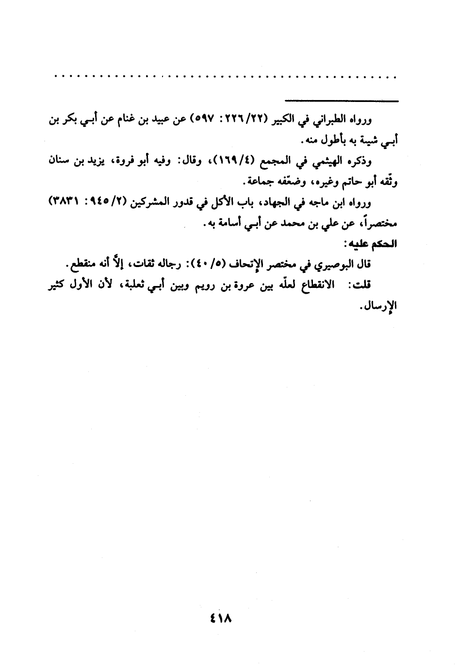 = ررواه الطبراني في الكبير (22/ 226: 597) عَنْ عُبَيْدِ بْنِ غَنَّامٍ عَنْ أَبِي بَكْرٍ بن أبي شيبة به بأطول منه.