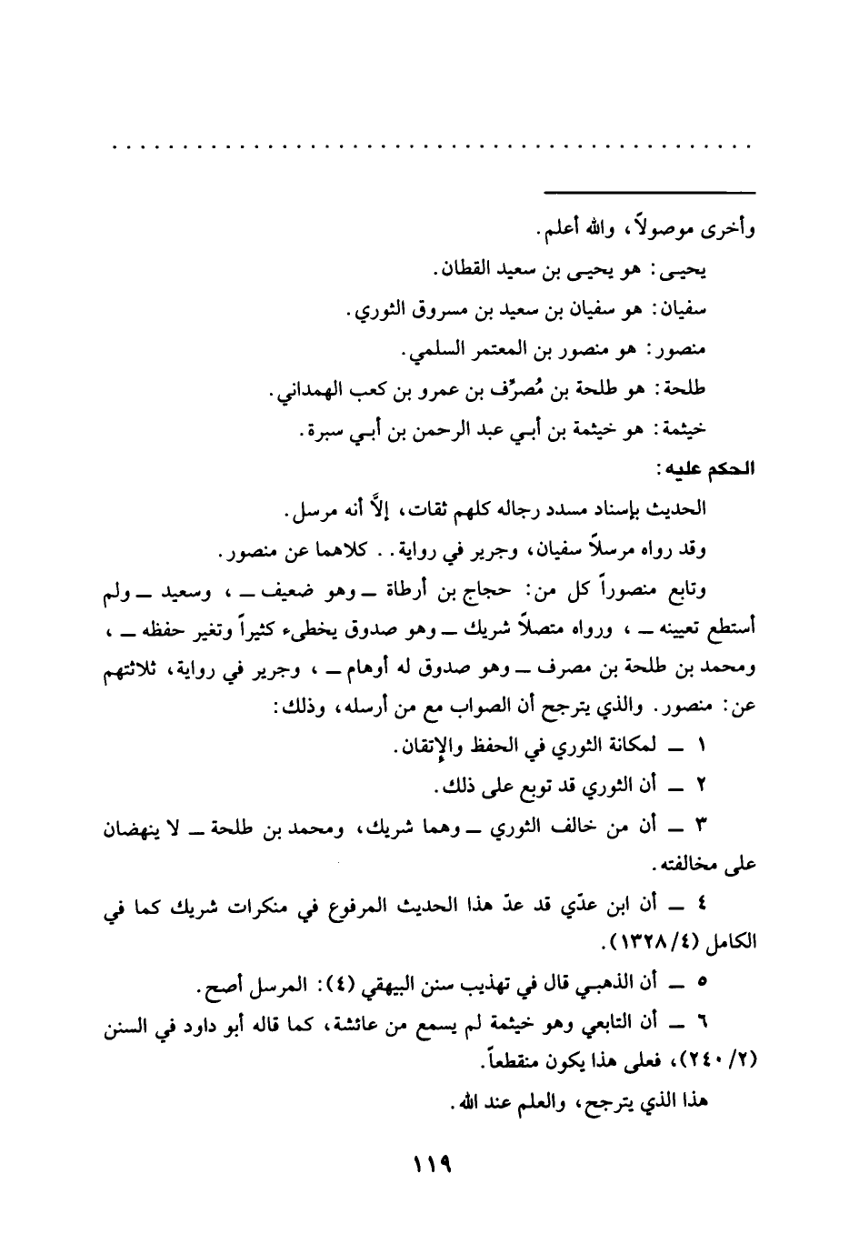 وقد رواه مرسلًا سفيان، وجرير في رواية .. كلاهما عن منصور.